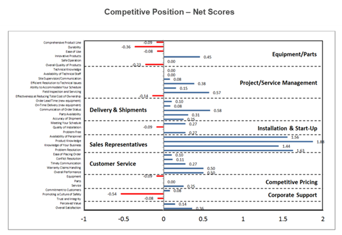 The competitive position chart below indicates that the company has little or no equipment or parts advantage but is superior to the competition in sales representation. This competitive positioning information is extremely valuable in determining a company's growth potential before purchase.