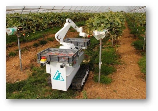 One of the more active areas of innovation is in the harvesting of strawberries. Robotic strawberry harvesting machines employ high powered computing and vision sensing technology. The systems are expensive, but once purchased a farmer can enjoy huge savings on labor costs. For example, one machine takes two people to operate but will replace 10 times that number of traditional pickers. Many experts predict that within 5 years the majority of strawberry growers’ harvest will be almost completely automated.
